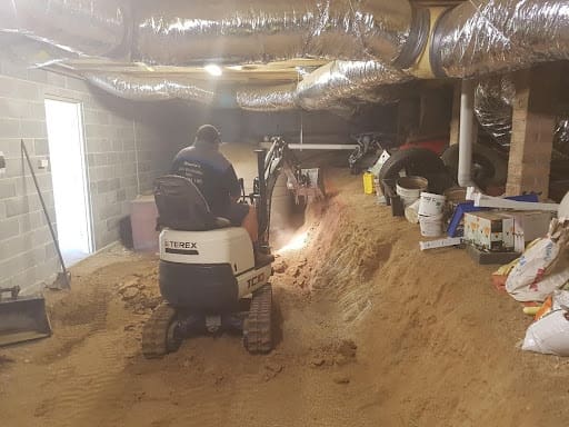This little machine can even access areas and excavate in an indoor environment. Digging out for an expanded garage section.